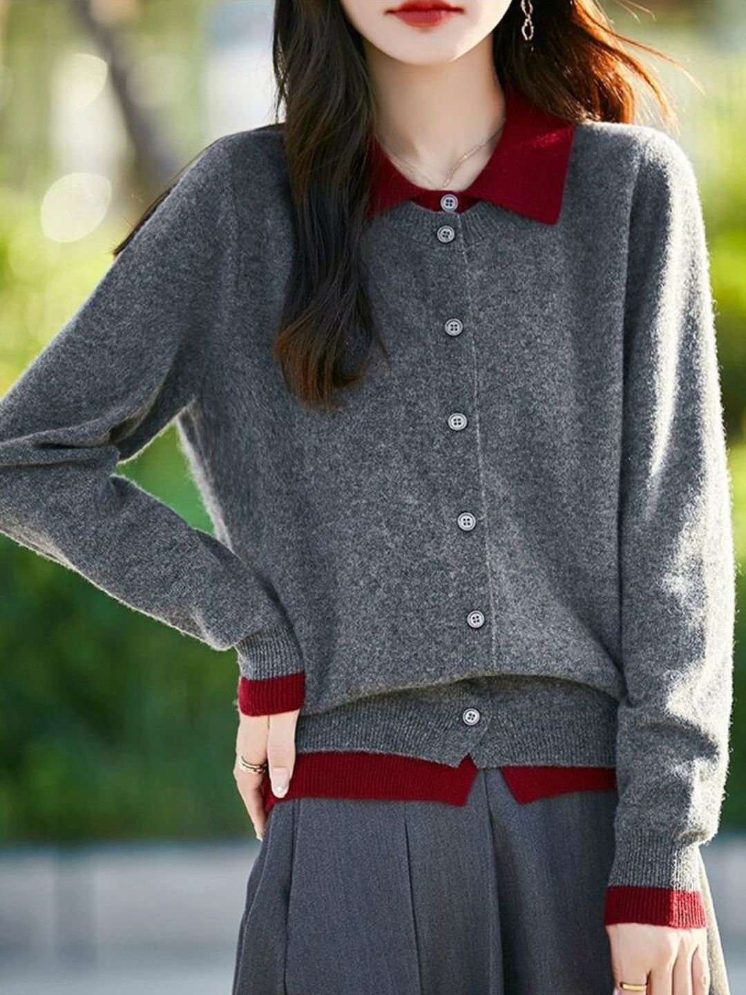 Casual Lapel Colorblock Knit Cardigan Set - Blue